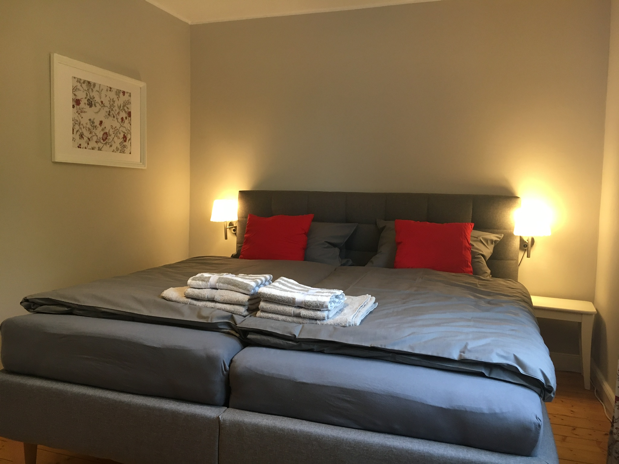- Jeweils ein Schlafzimmer mit folgenden Bettgrößen: 2 x 2m, 1,80 x 2m, 1,80 x 2m, 2 Betten á 80 x 1,90m