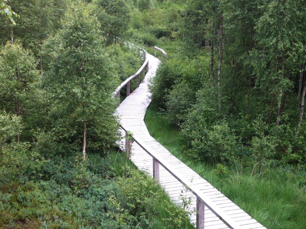 „Das Hochmoor Mecklenbruch ist das größte Hochmoor im Solling. Die mit Birkenbruchwäldern und niedriger Moorvegetation bewachsene Fläche ist 63 ha groß und wurde bereits 1939 unter Naturschutz gestellt. … Über einen Holzsteg und vom Aussichtsturm kann das Hochmoor erlebt und entdeckt werden.“